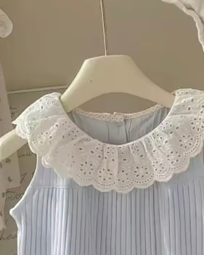 涼しげなブルーにレース襟が映えて、写真映えも、おでかけもばっちりです!