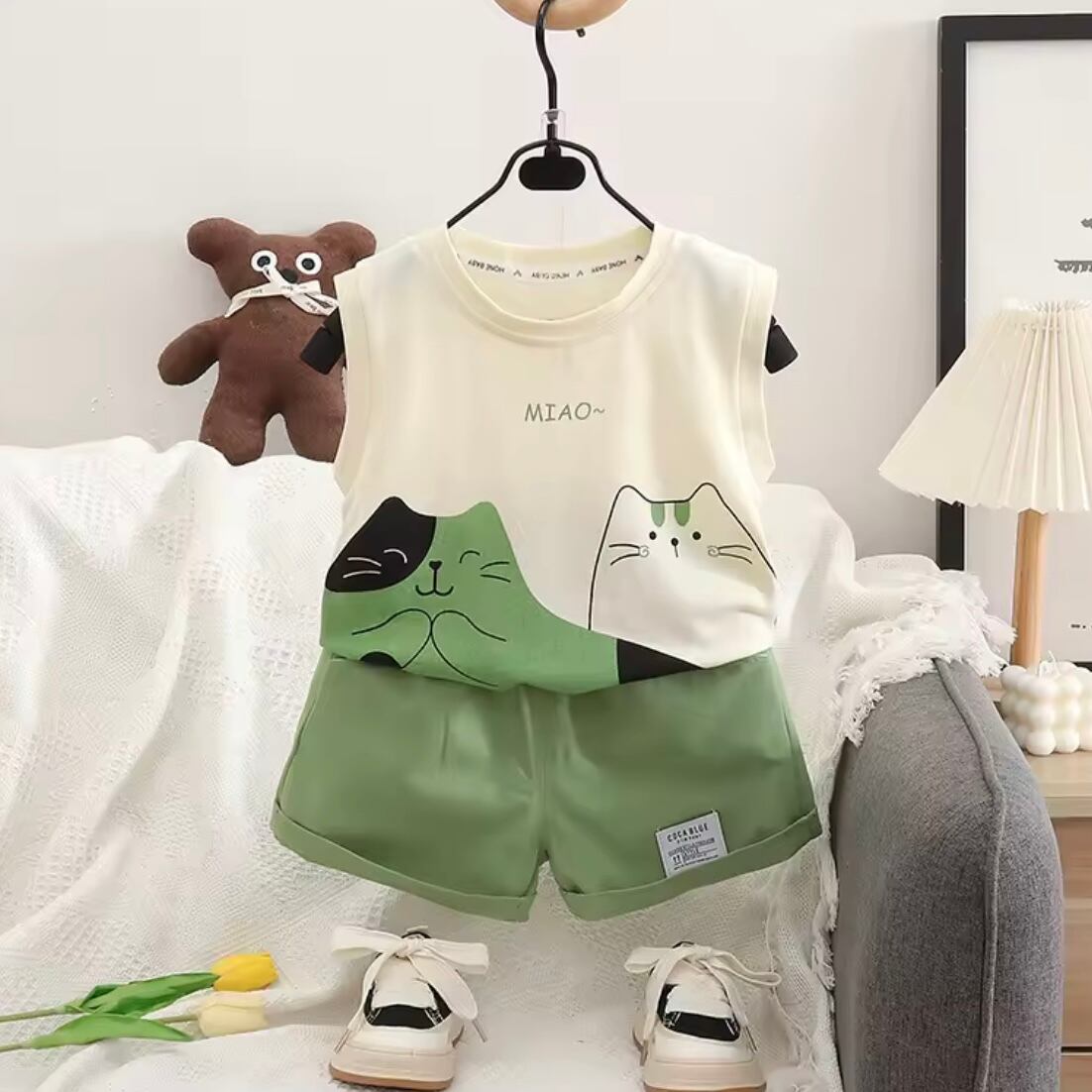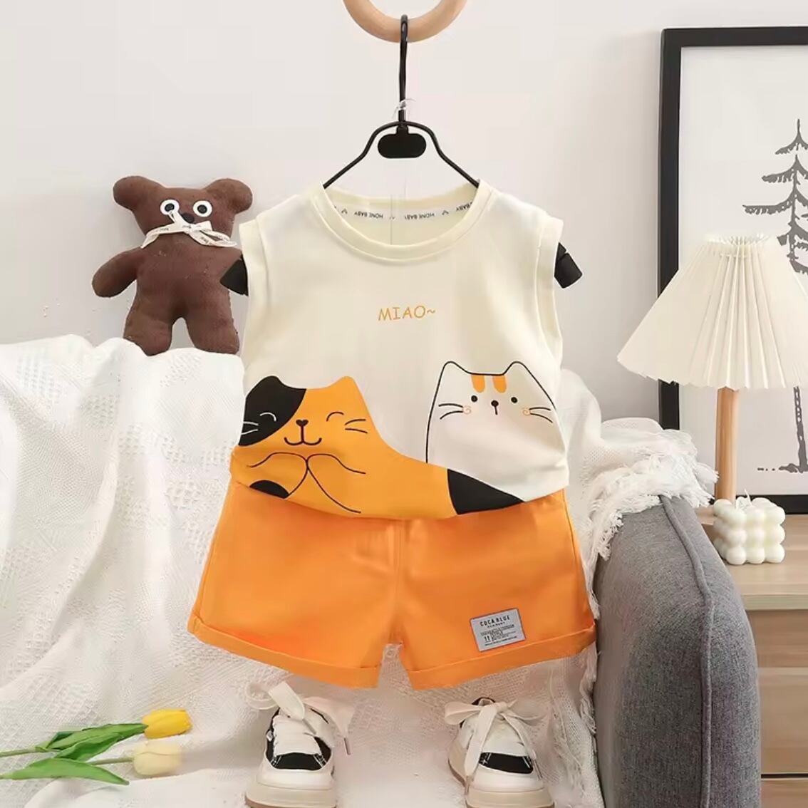 ゆるっと可愛いネコ柄タンク&ショートパンツのセット!