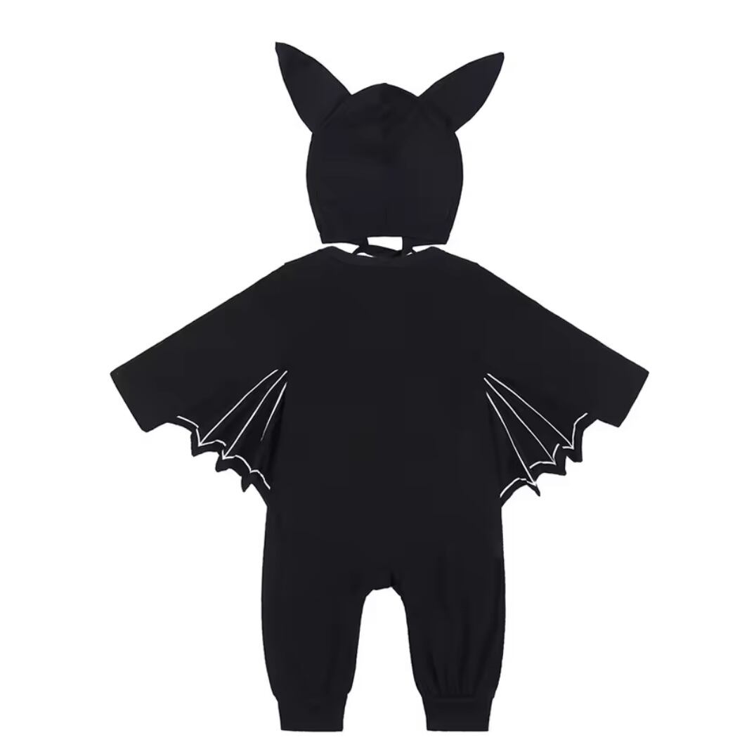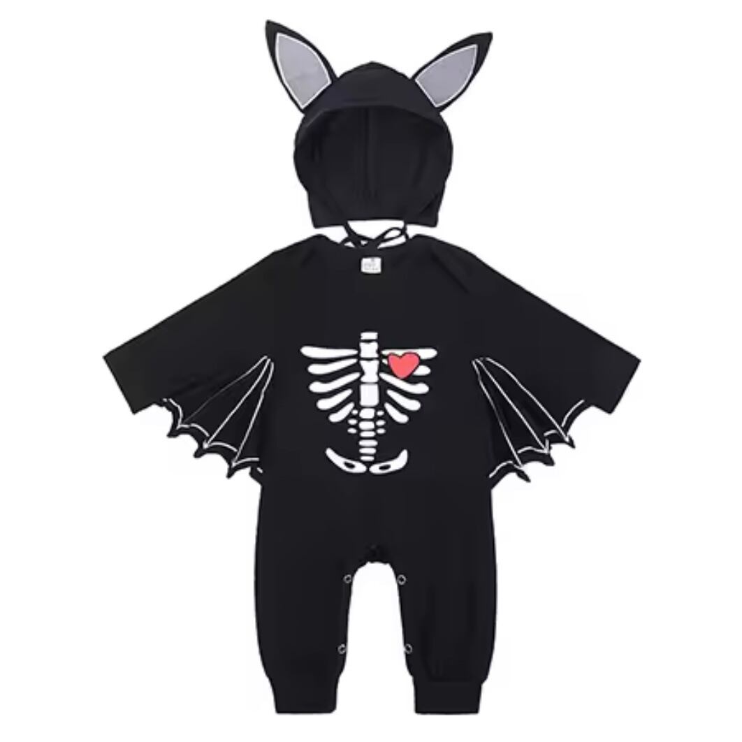コウモリの羽がポイントの赤ちゃん用ハロウィンロンパース。
