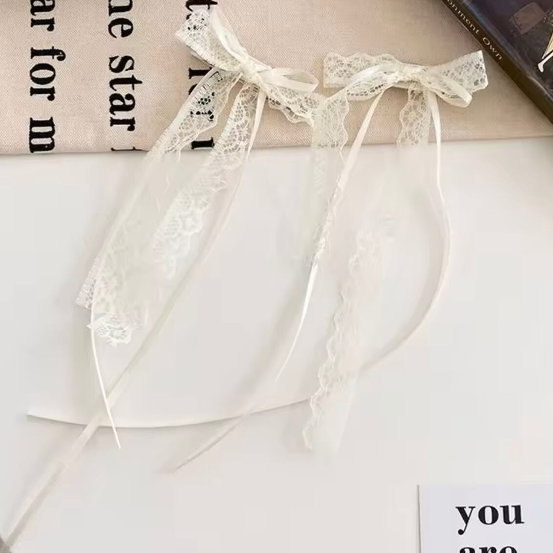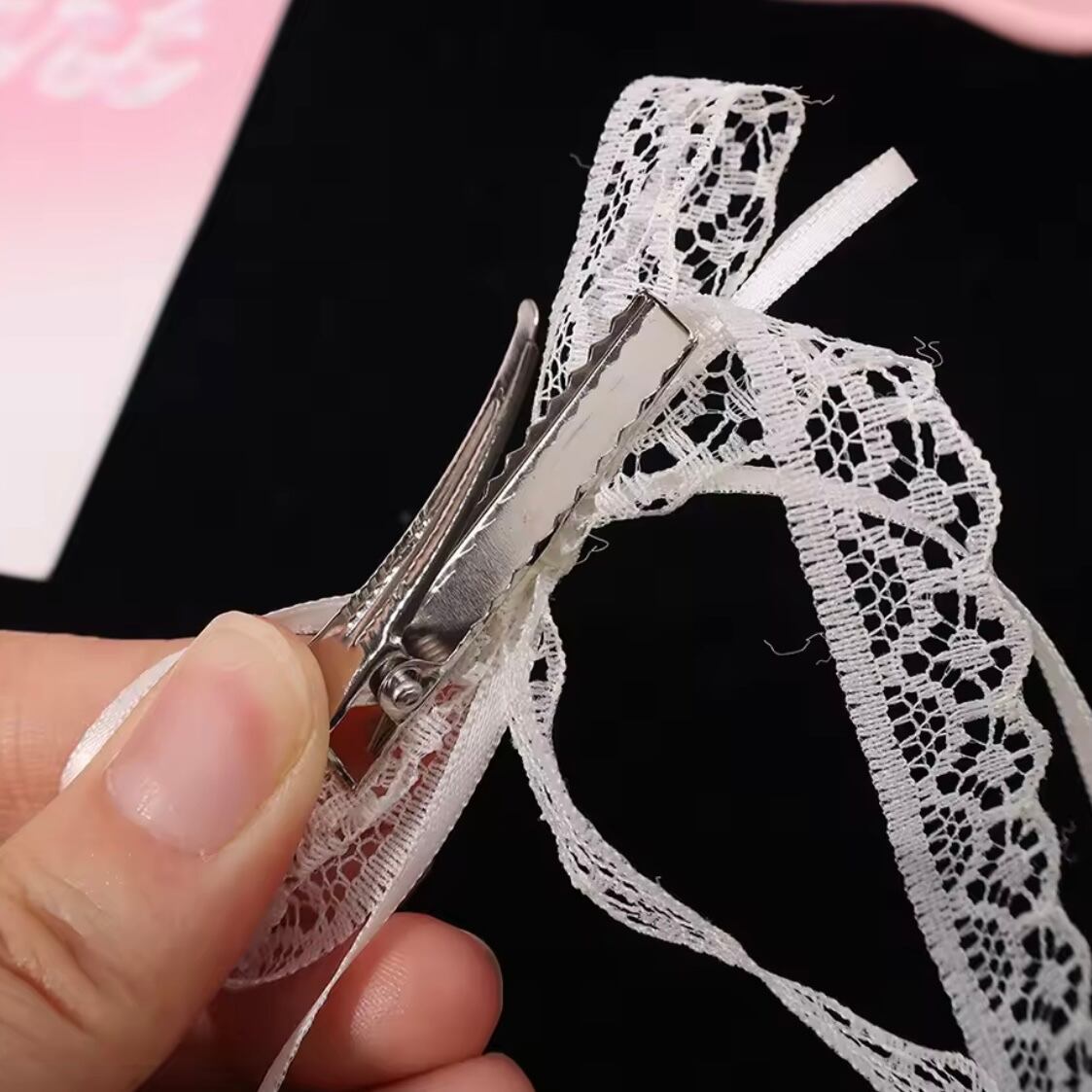 ガーリーで上品なレースのリボンヘアクリップ。