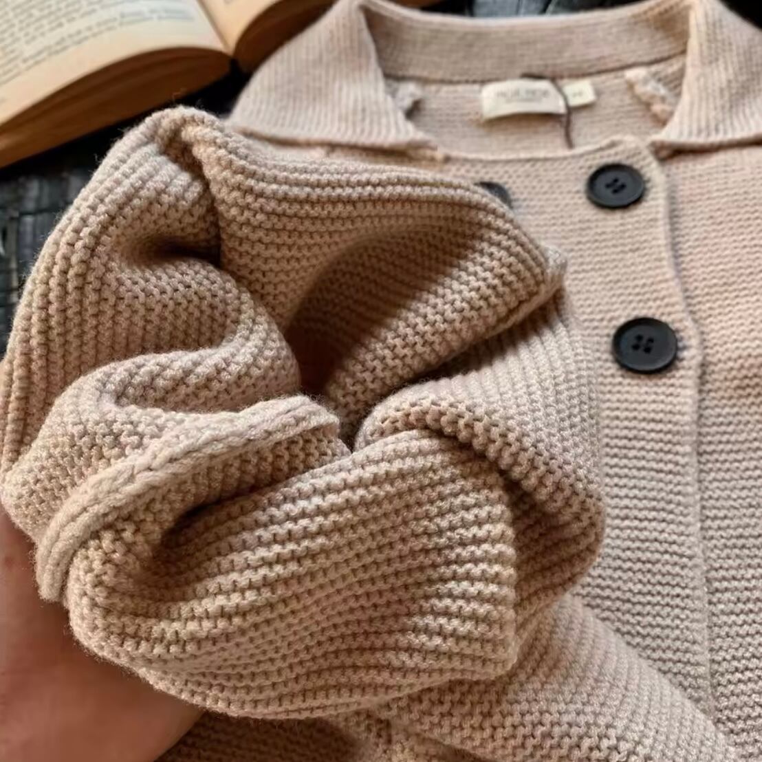 落ち着いたカラーと上品なデザインで、秋冬のお出かけにぴったり。カーディガンとパンツの便利なセットです。