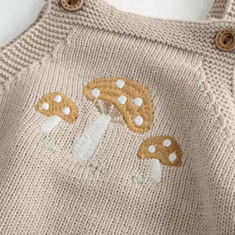 キノコ刺繍ニット(カーディガン・ロンパース【帽子】)