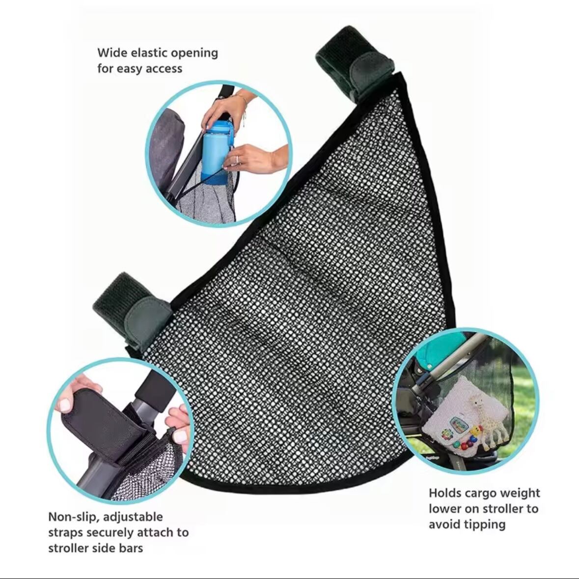ベビーカーのサイドに掛けて使える大容量メッシュバッグです。おむつ・おもちゃ・哺乳瓶など、外出時の必需品をひとまとめに。通気性が良く中身が見やすいので、出し入れもスムーズ。公園やお散歩、買い物など日常使いに最適です。