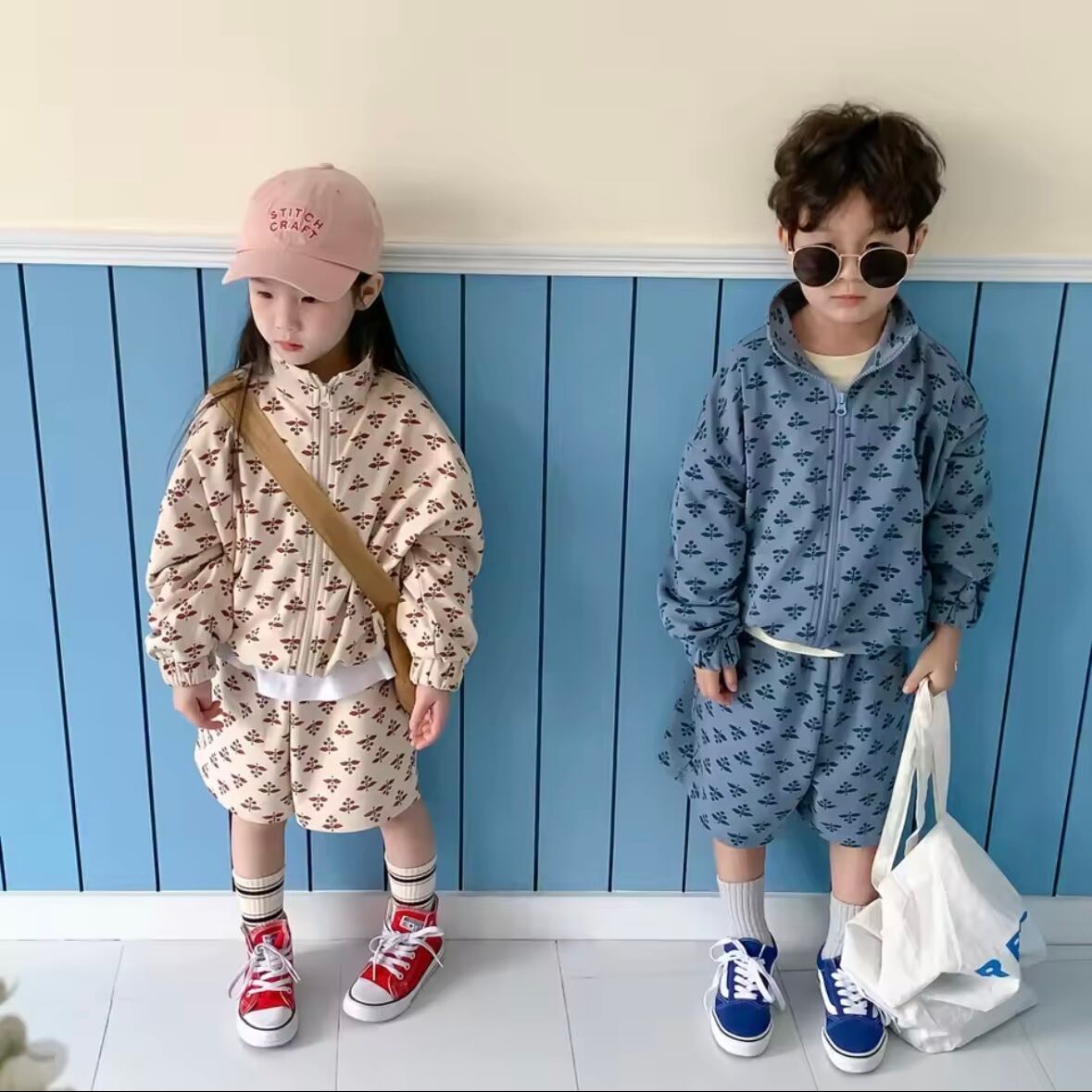 総柄プリントがおしゃれな2ピースセット。上下で着ても、別々に着ても使える万能アイテムです。きょうだいでのお揃いや、双子コーデにもおすすめ。