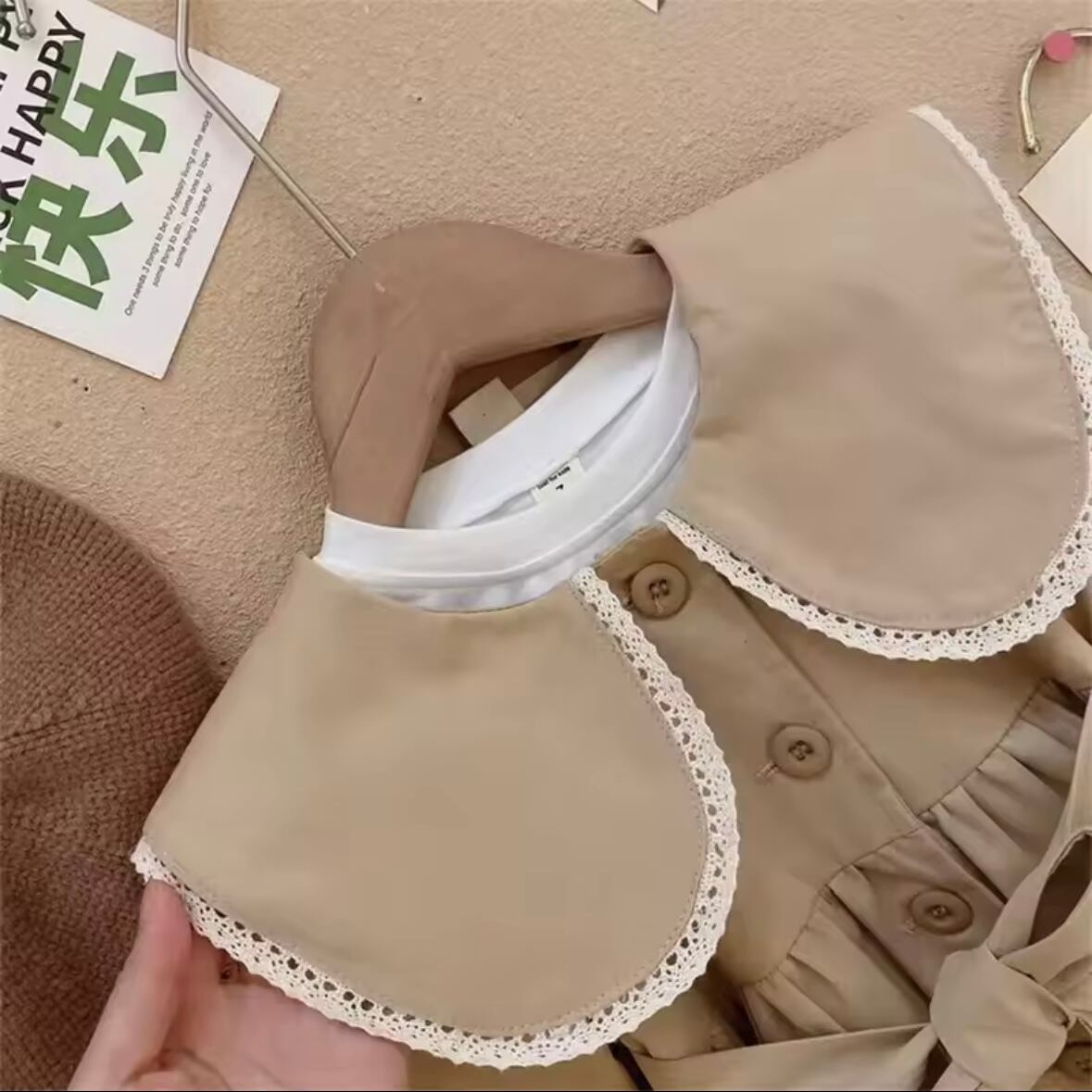 大きな襟とウエストリボンがポイントのかわいいコートワンピースです✨