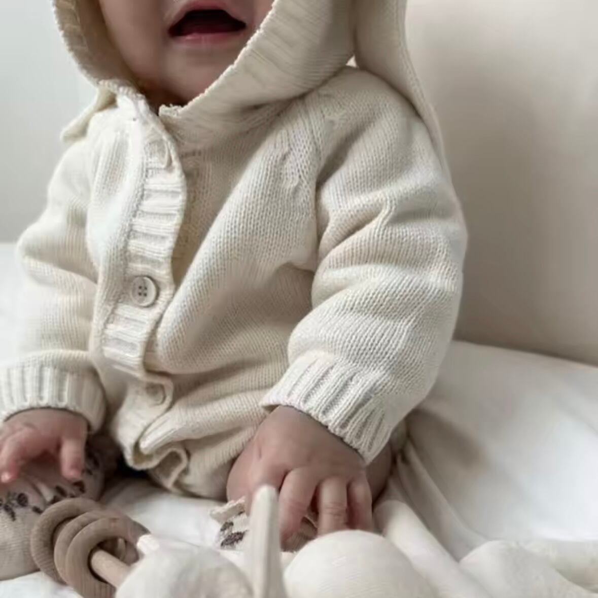 バニー耳付きニットロンパース