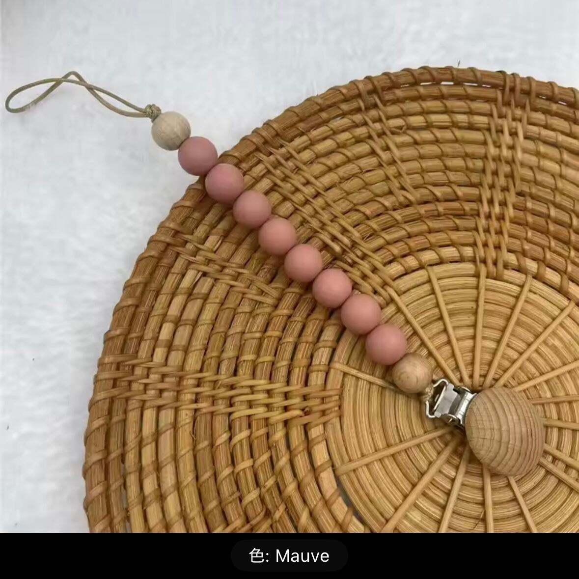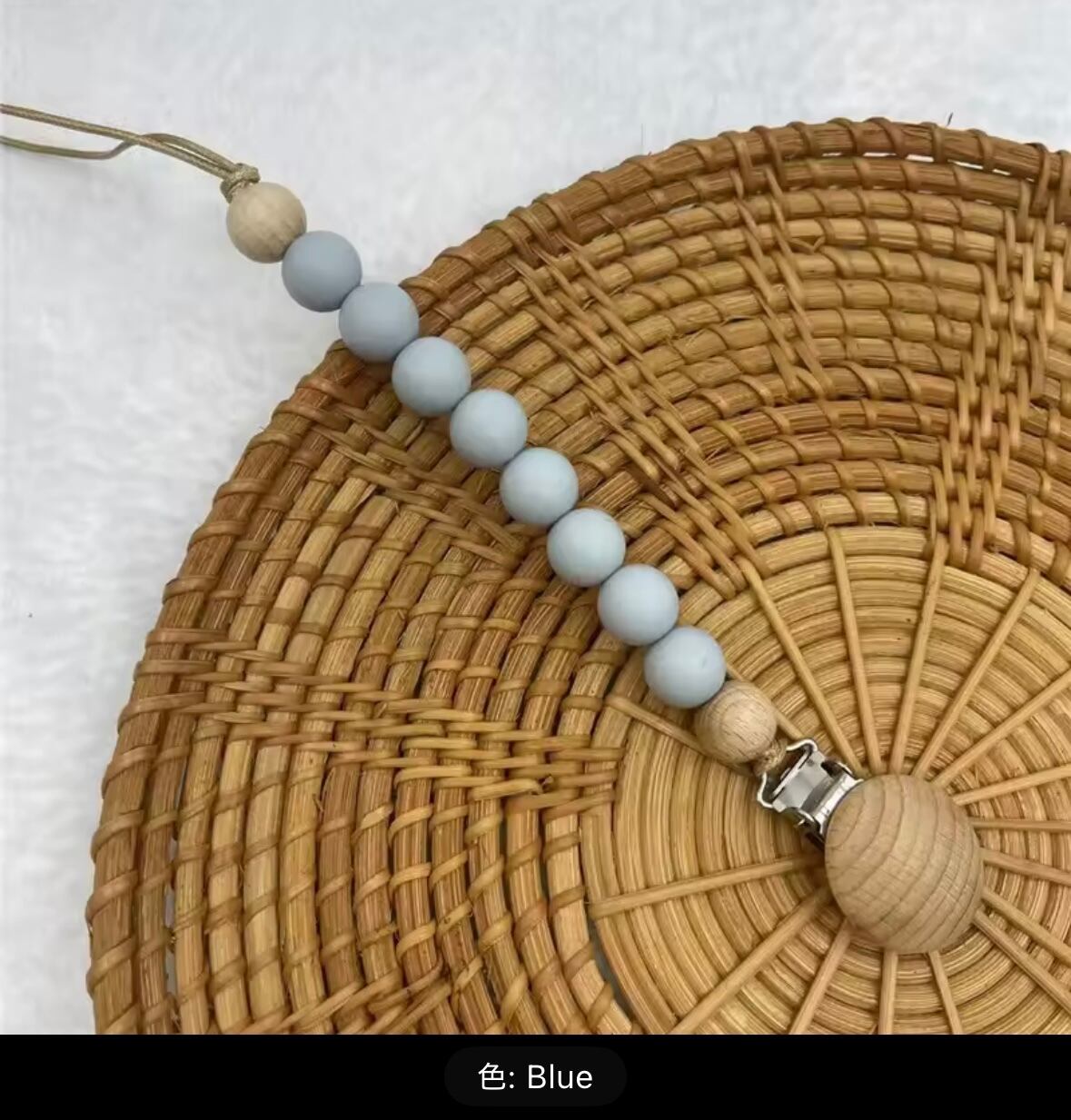 木製クリップとシリコンビーズを使った、ナチュラル可愛いおしゃぶりホルダー。