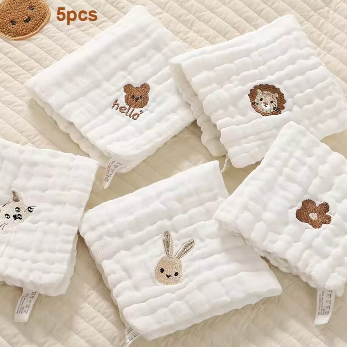 よだれかけや沐浴タオル、お出かけ用のハンカチとしても便利な5枚セットです。