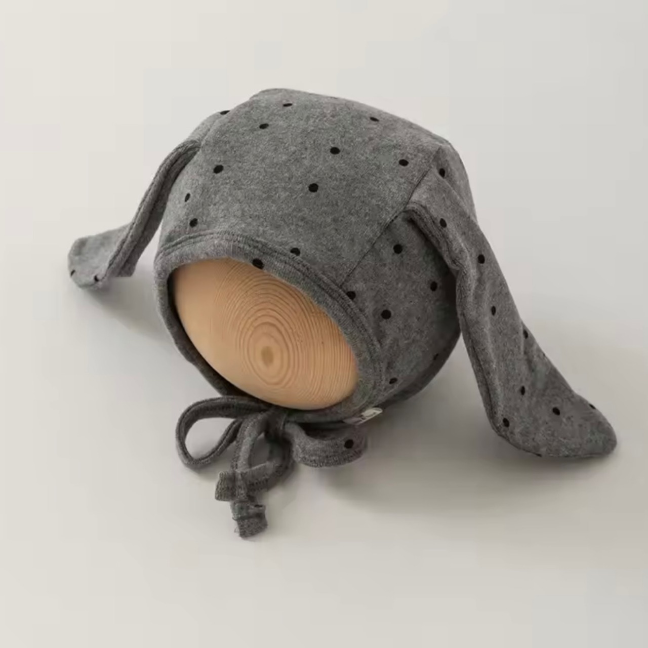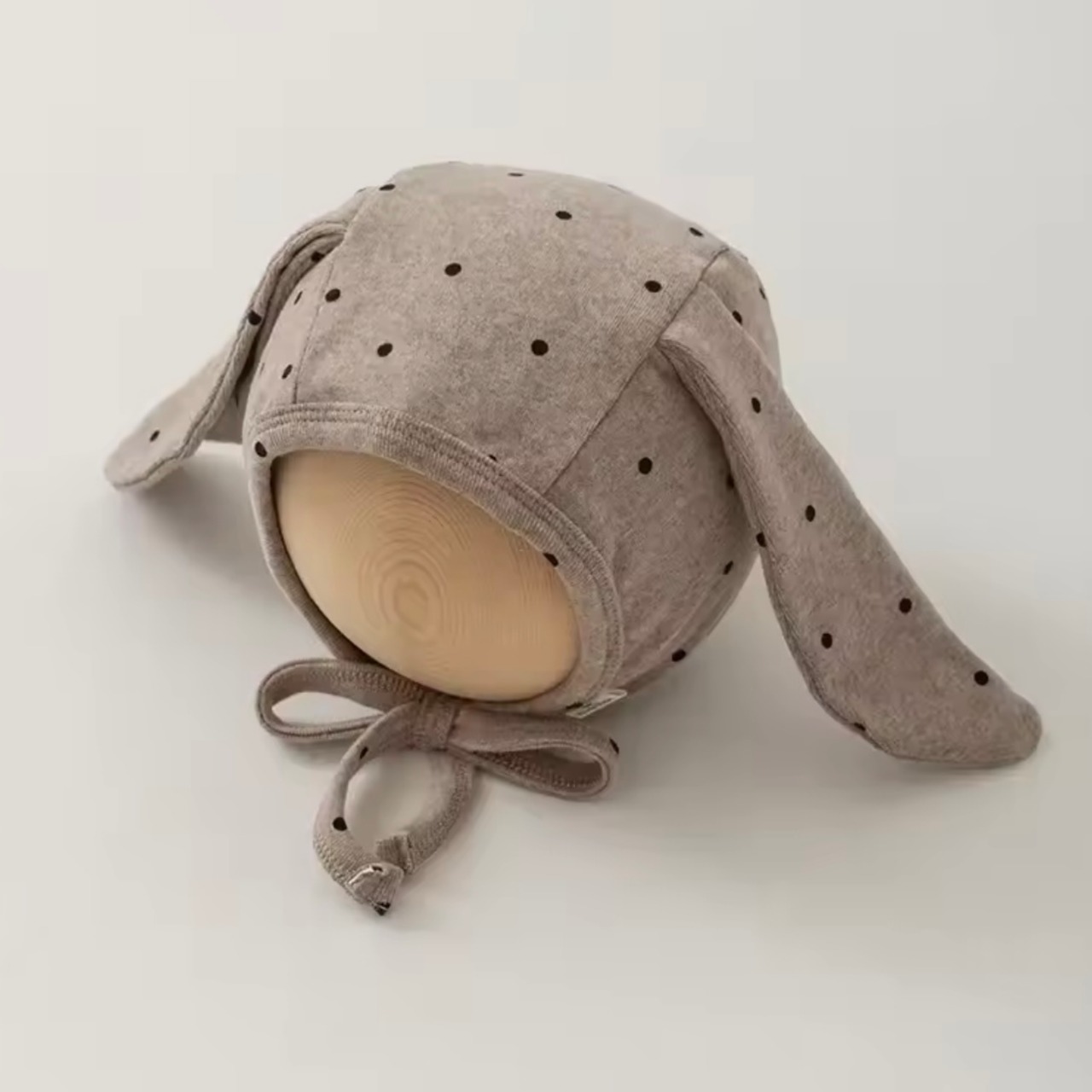 柔らかい生地で頭を優しく包み、長めの耳がポイントです。