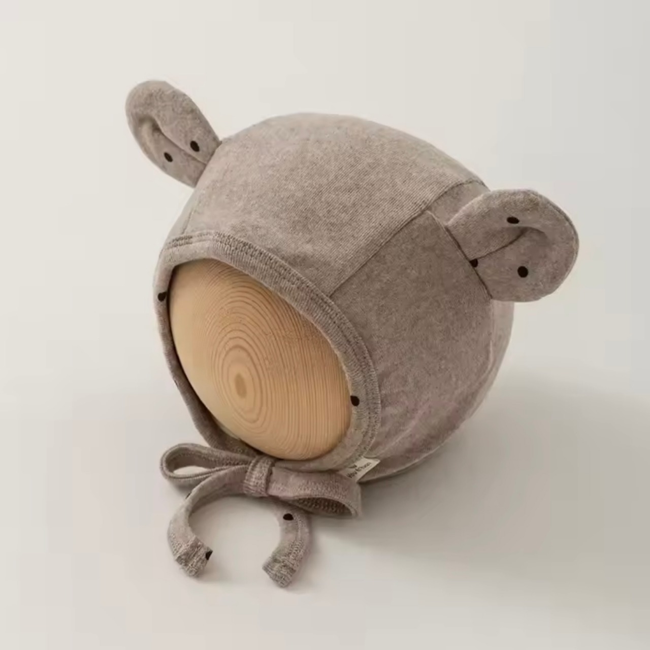赤ちゃんの可愛さをさらに引き立ててくれる耳付きボンネット。
