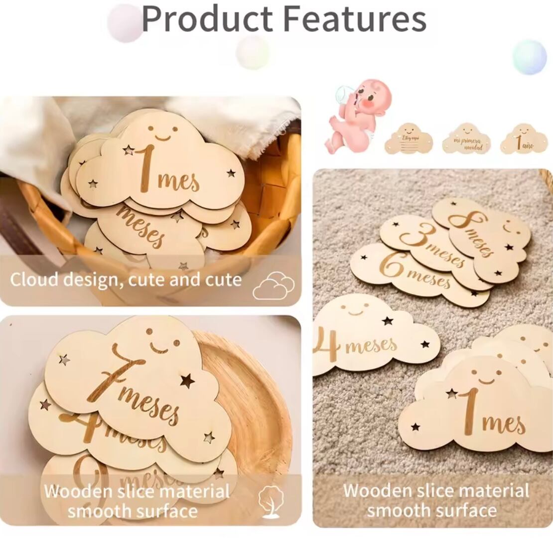 赤ちゃんの成長をかわいく記録できるマンスリーカード。