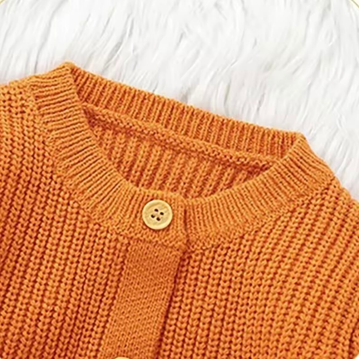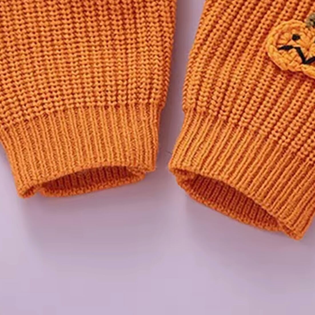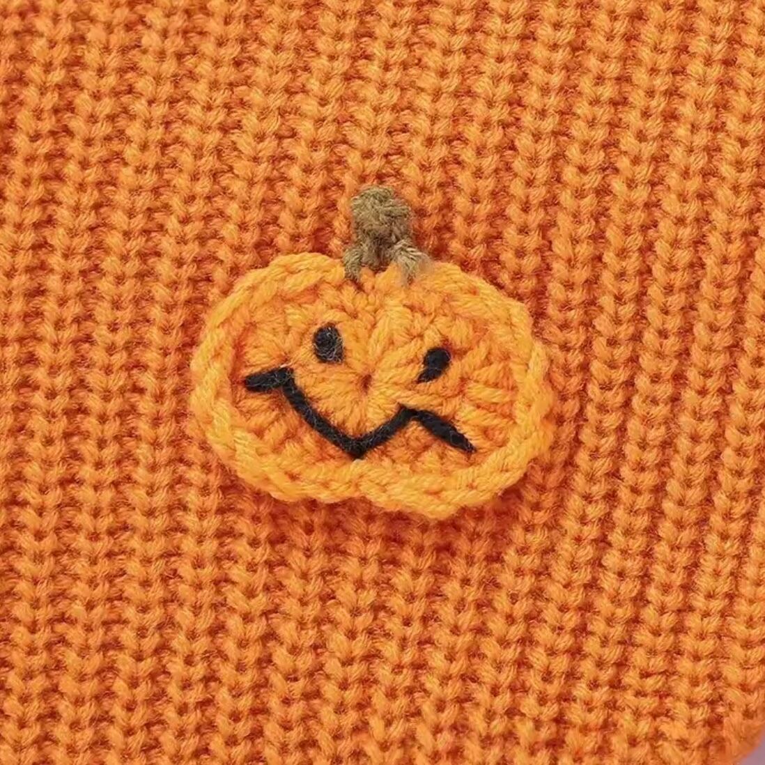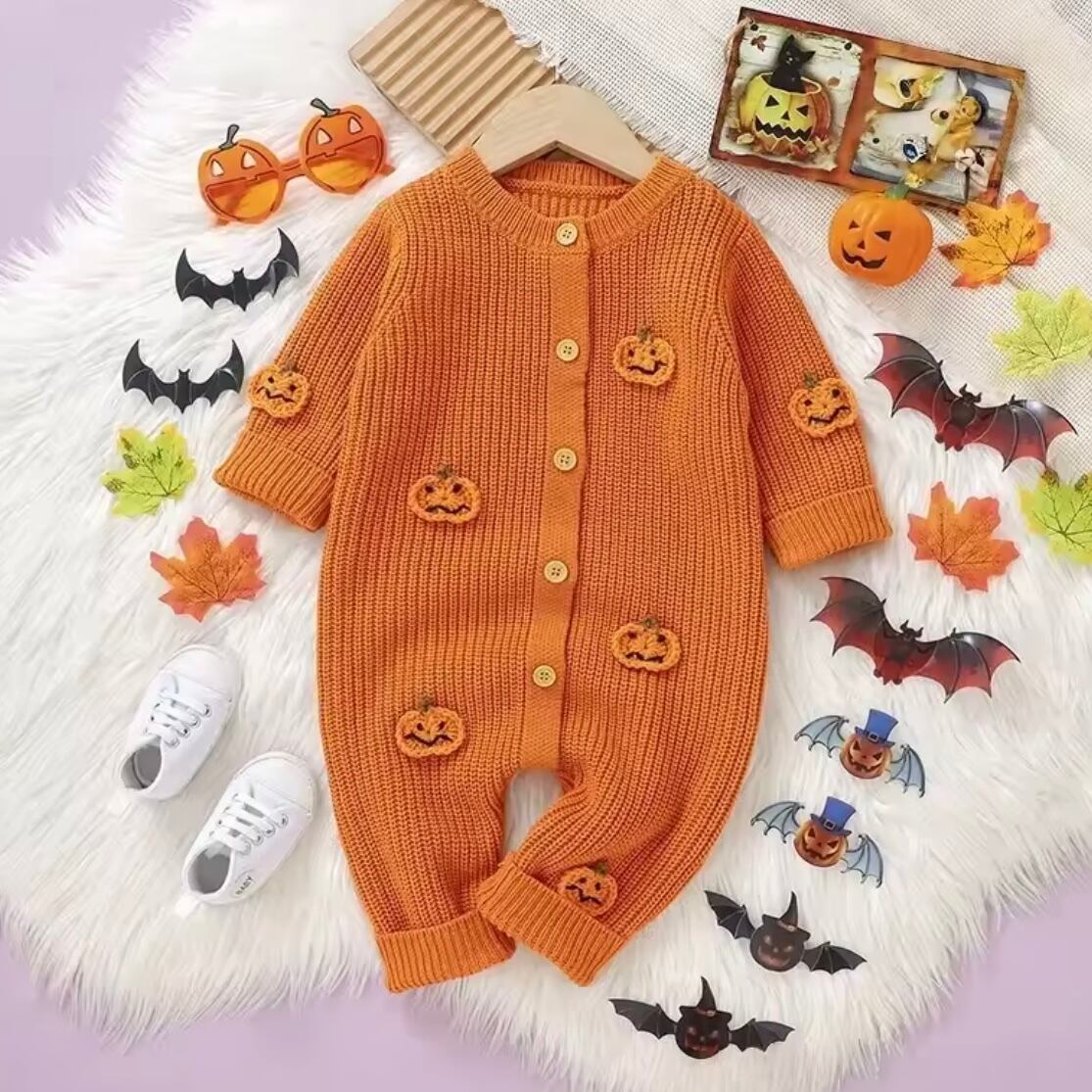 ハロウィンシーズンにぴったりの、3Dかぼちゃモチーフがかわいいニットロンパース。