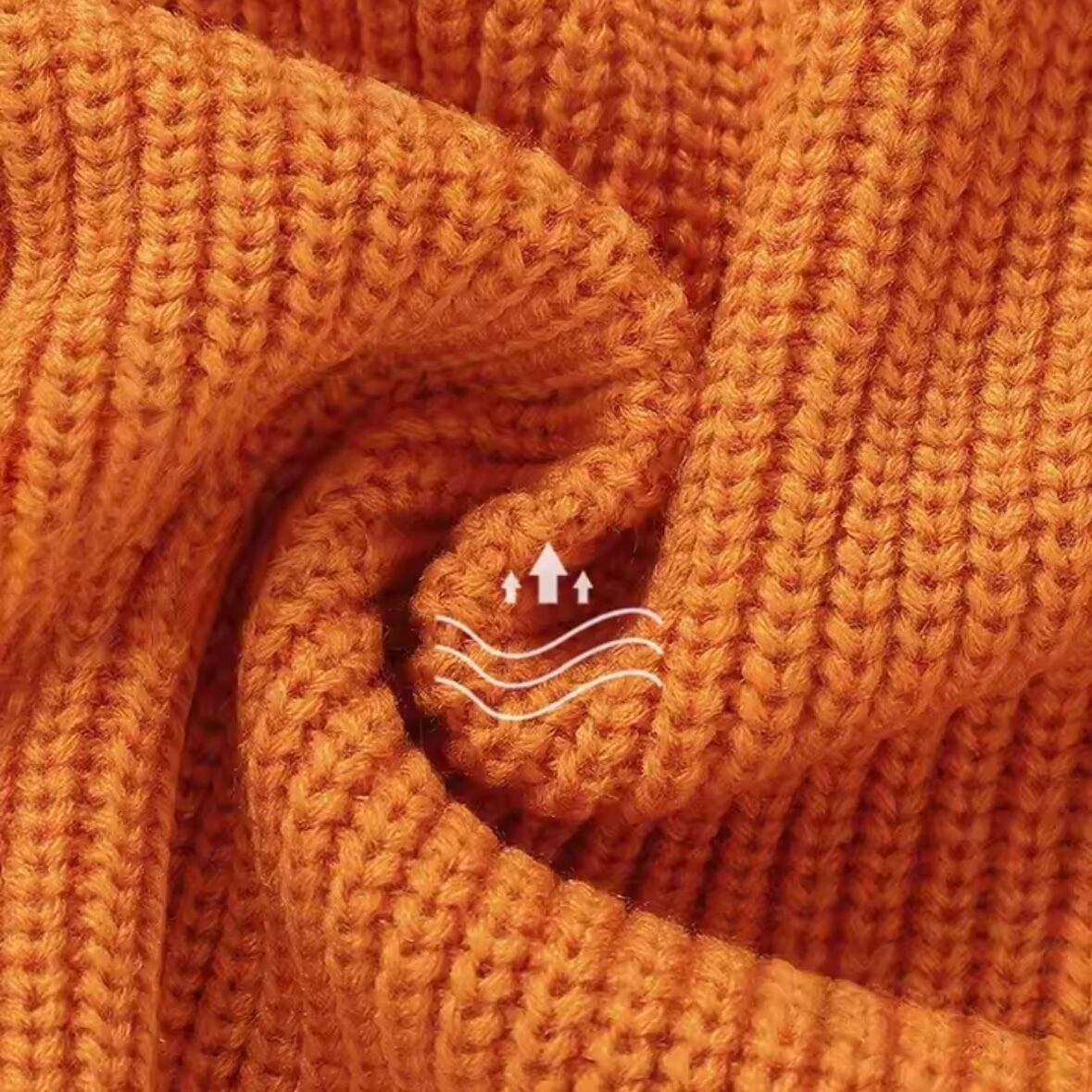 厚手でやわらかいニット素材を使用し、動きやすさとあたたかさを両立しています。