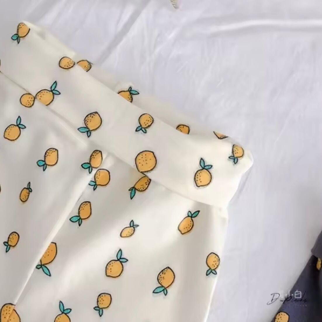 コットン素材の長袖トップスとハイウエストパンツのルームウェアセットです。
